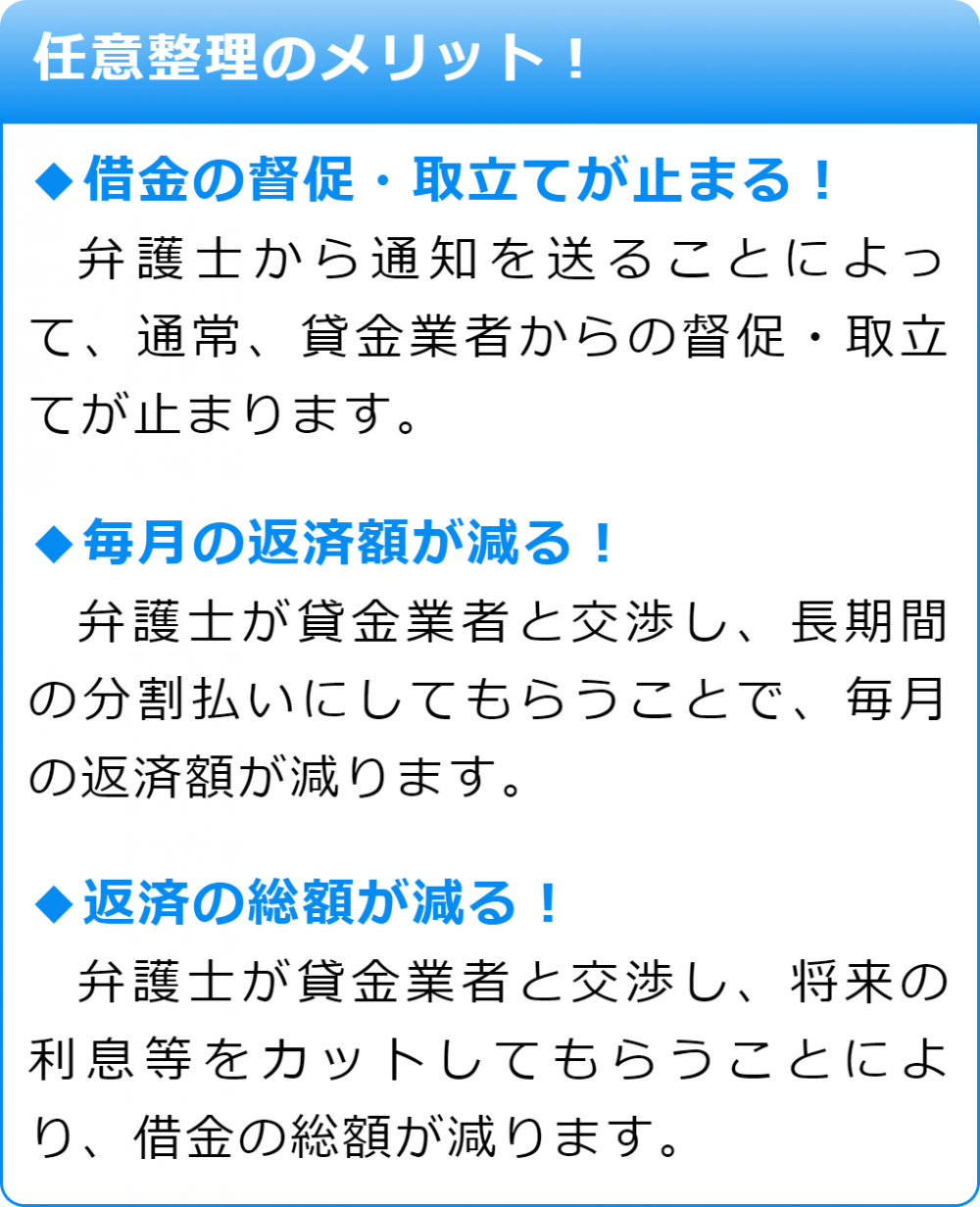 任意整理という方法を用いることでお悩みを解決できる可能性があります。